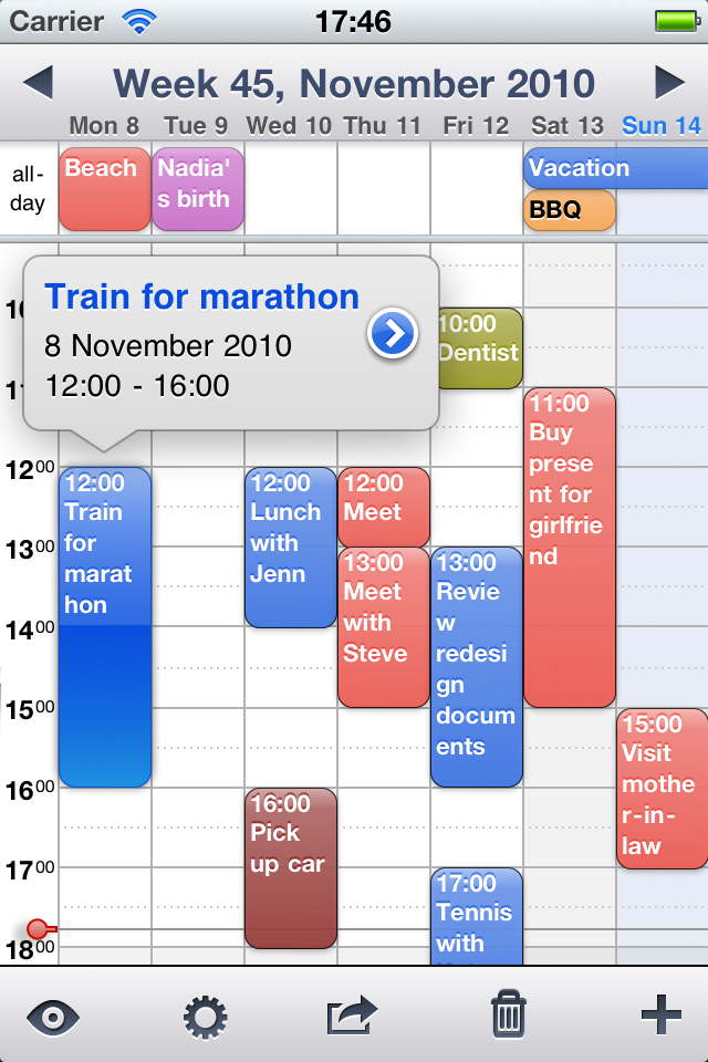 Week Calendar makes managing multiple schedules easy. Personally, I have to keep an eye on six separate schedules, and most other apps perform poorly when dealing with a ton of different calendars. One of the most unique and useful features the app sports is in its name, the week view.